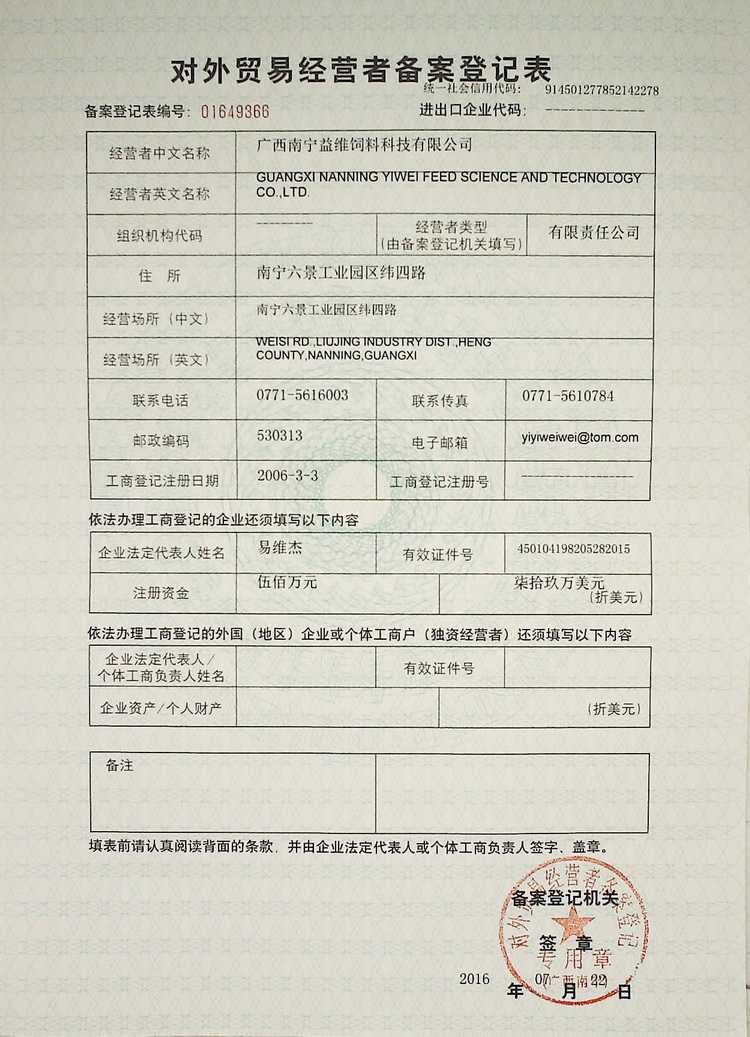 益維—對外貿(mào)易經(jīng)營者備案登記表