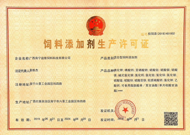 益維—混合型飼料添加劑生產(chǎn)許可證